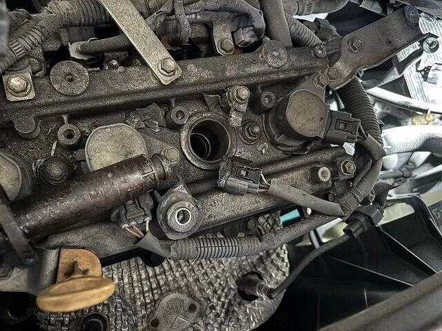 今回の原因は、エンジン部分でスパークプラグが外れてしまい、その際衝撃でイグニッションコイルが破損してしまい、コイルがはずれた勢いでケースまで割れてしまった。